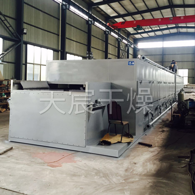 汙泥專用帶式幹燥機工作(zuò)原理是物料由(yóu)加料器均勻地鋪在網帶(dài)上,網帶(dài)一般采用12-60目不鏽鋼絲網,由傳動裝置拖動在幹燥機內移(yí)動。幹燥機(jī)由(yóu)若幹單元組成,每一單元熱風獨立循環,部分尾(wěi)氣由專門排濕風機排出,廢氣由調節閥控製,熱氣由下(xià)往上或由上往下穿過鋪滿物料的網帶完成熱量與質量傳遞的(de)進程,帶走物料水份。網帶緩(huǎn)慢移動,運行速度可根據物(wù)料(liào)溫度自由調節,幹燥後的成品連續落入收料器中。上下循環單元根據用(yòng)戶需(xū)要可靈活配備,單元數量亦可根據需要選取。