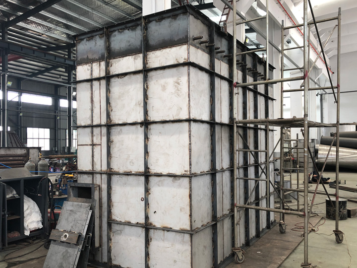 我公(gōng)司本月接到了貴州某(mǒu)股份公司的訂單,需要EMD離線清灰布袋(dài)除塵(chén)器一(yī)台,天(tiān)宸幹燥憑借著多年製(zhì)造幹燥(zào)設備的經驗,很快設計出圖紙,緊急製作中,圖為製作現場!