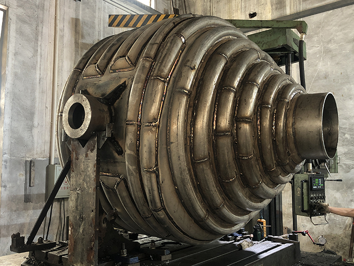 圖為正在進行鏜銑加工的盤管加熱裝置