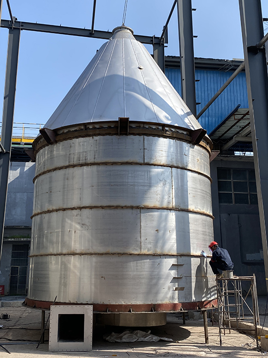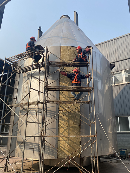 我公司2月發貨的噴霧幹燥機正在現場進行施工,預計於4月施工完成。圖為施工現場。